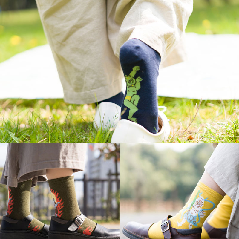 Mashroba planned to produce Buddha-themed products that make people smile. Coincidently, we met a socks manufacturer in Nara. We launched a project to produce socks with Buddist statue inspired characters. We named its brand “BUTSUSHITA”.